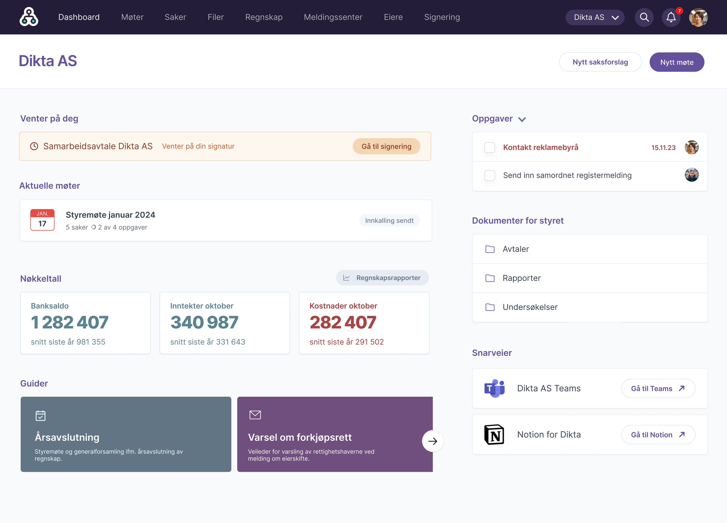 Her samler styret alle dokumentene, oppgavene, møtene og referatene, og får tilgang på verktøy og funksjoner for å utføre oppgavene de har i forbindelse med styrearbeidet.